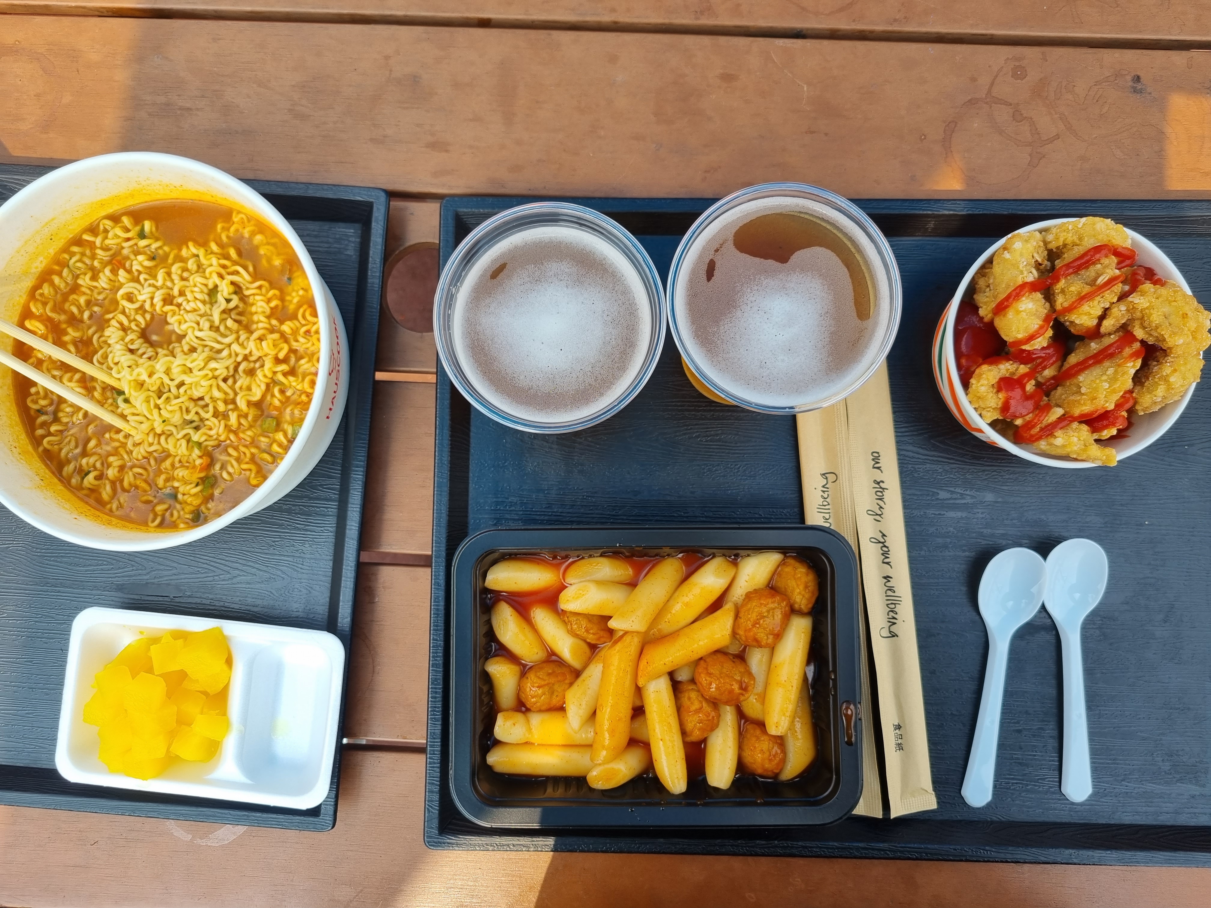 저는 친구랑 라면 한 개 맥주 세트에 +1 맥주, 떡볶이를 구매해서 먹었답니다.