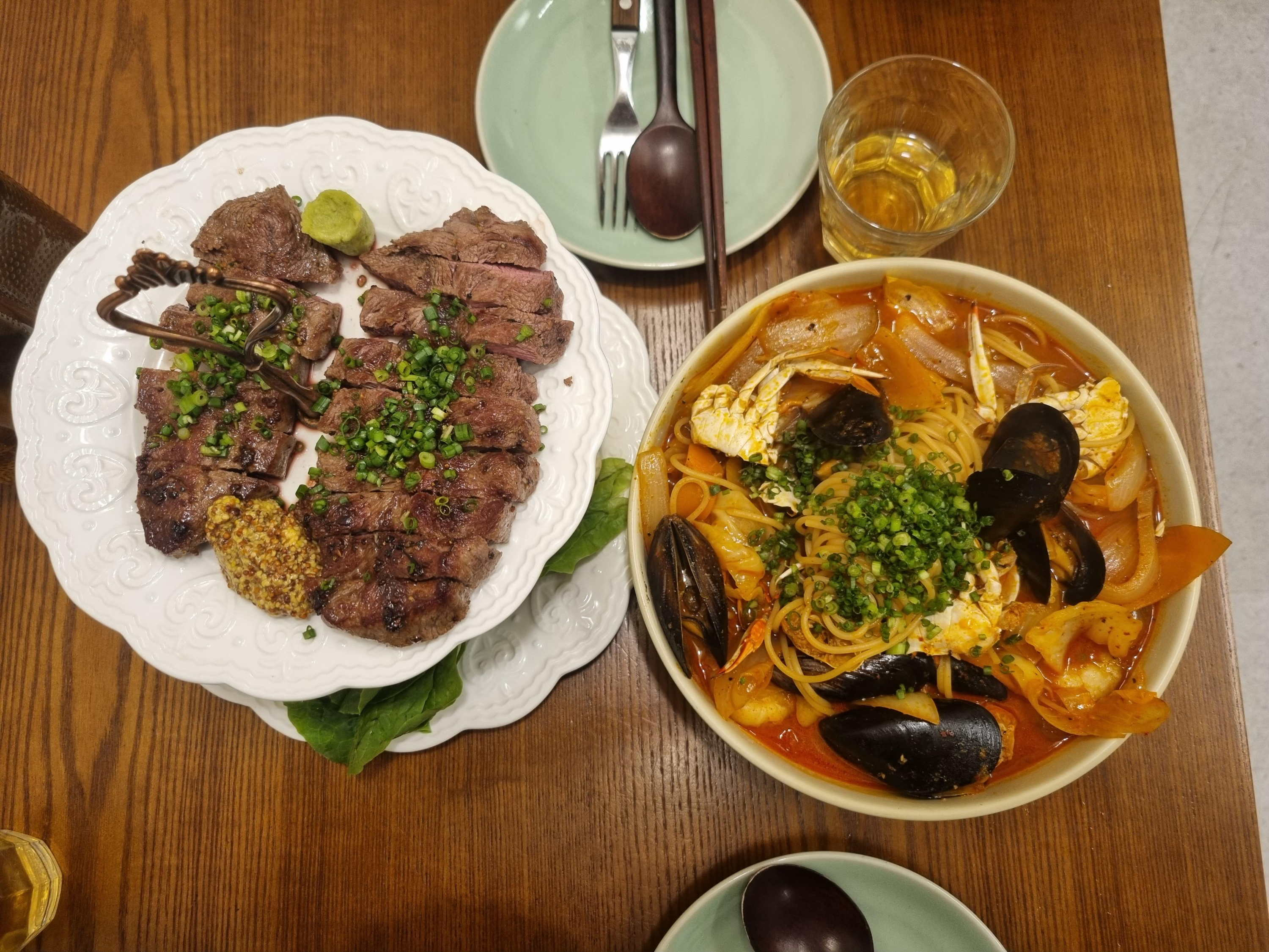 저희는 소 부채살 스테이크와 해물 짬뽕 파스타를 시켜먹었습니다.