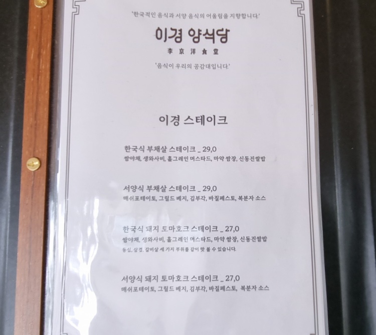 이경 양식당 메뉴판
