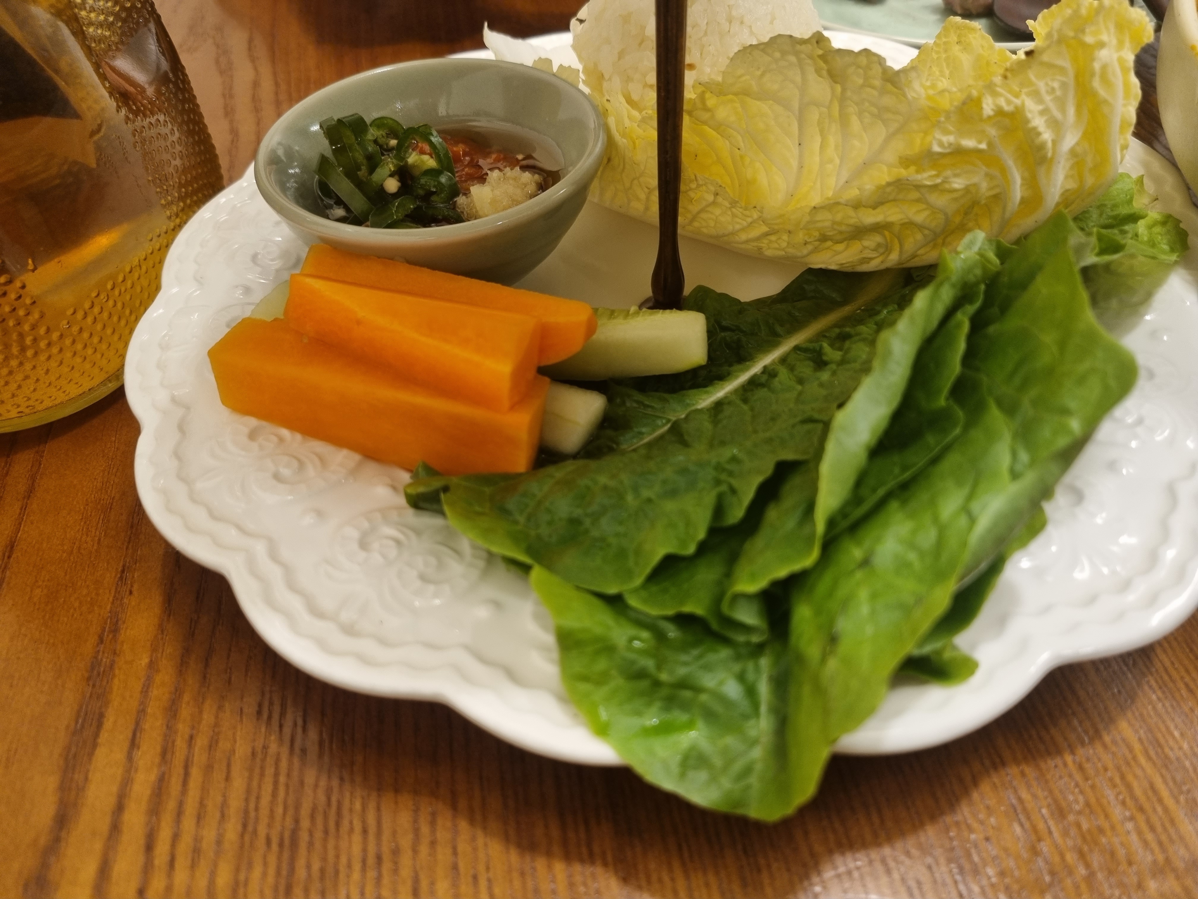 그리고 쌈장은 일반 쌈장이 아닌 다진 마늘, 청양고추. 참기름을 섞은 특제 쌈장으로 줍니다.