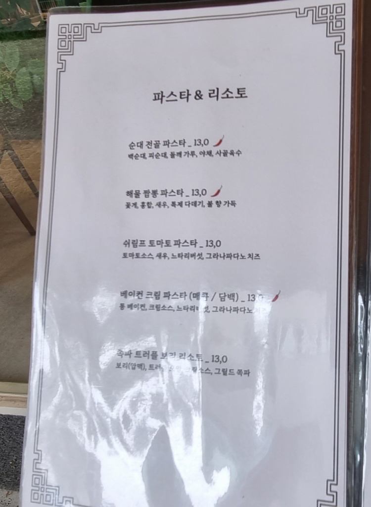 ★★해물 짬뽕 파스타: 정말 매우 강추드립니다. 일반적인 짬뽕 맛보다는 불향이 조금 나는 짬뽕국물에 국물은 꾸덕꾸덕하면서 파스타 면발이 굉장히 잘 어울렸습니다.