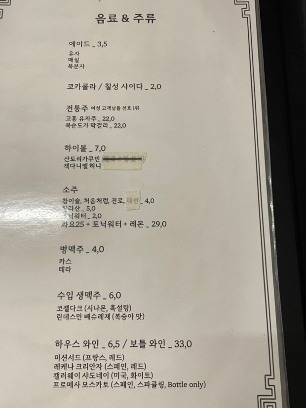 메뉴판이 굉장히 이쁘게 생겼습니다.