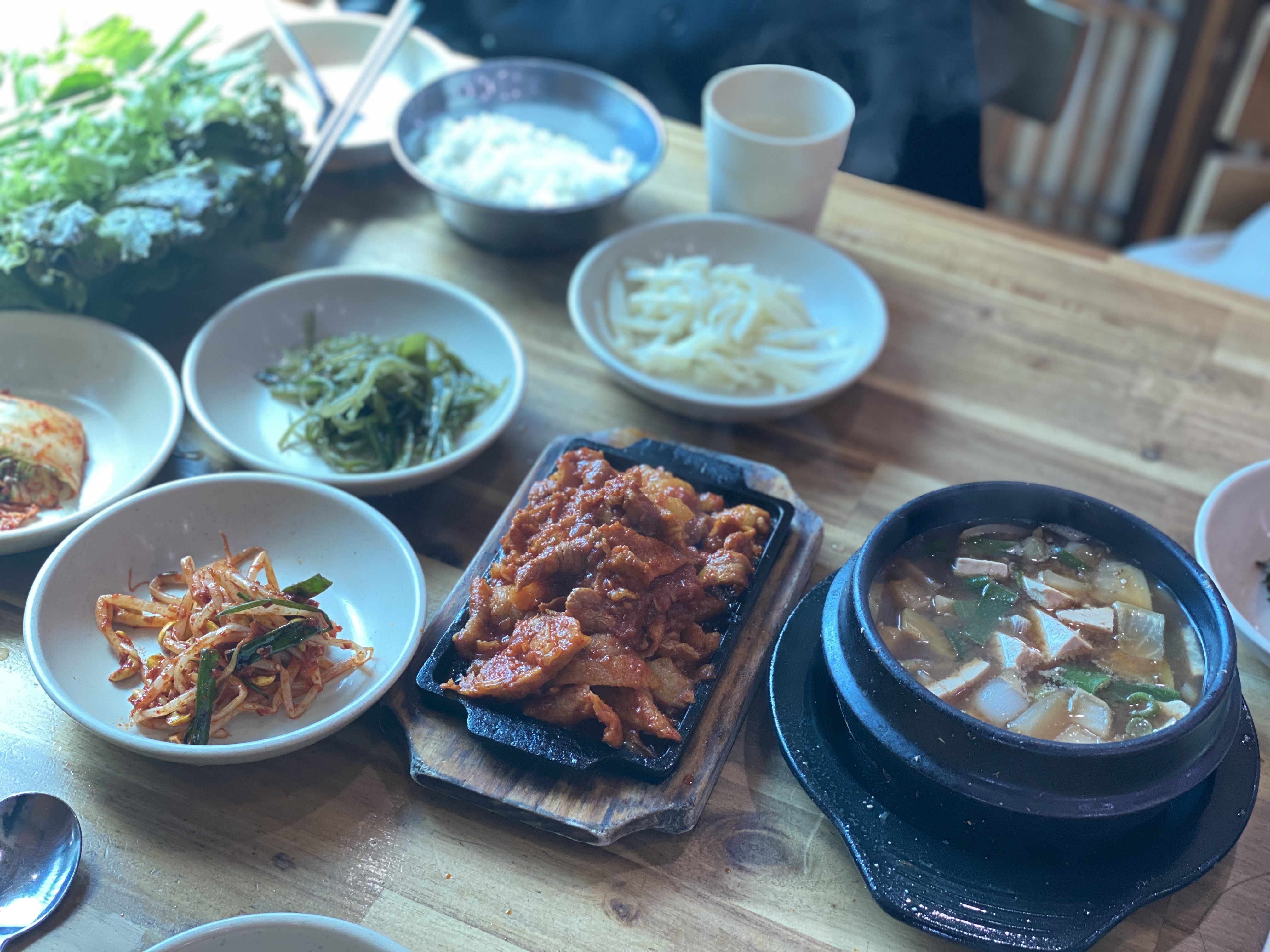 저희는 이제 제육덮밥과 된장찌개가 나오는 모내기 정식을 먹었습니다.