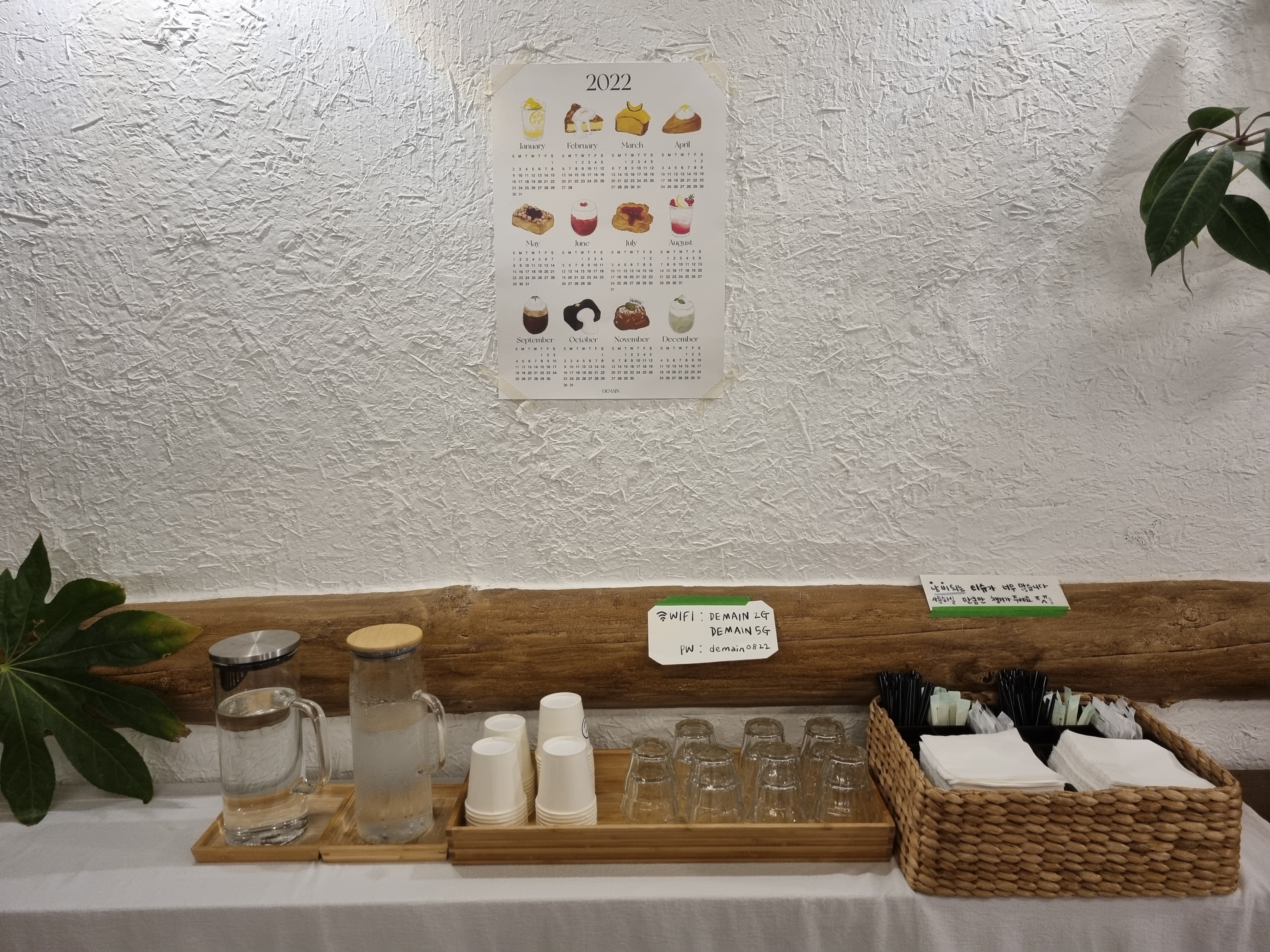 카페 드메인의 와이파이 비번은 물을 따라 마실 수 있는 곳에 적혀있으니 참고하시면 되겠습니다.