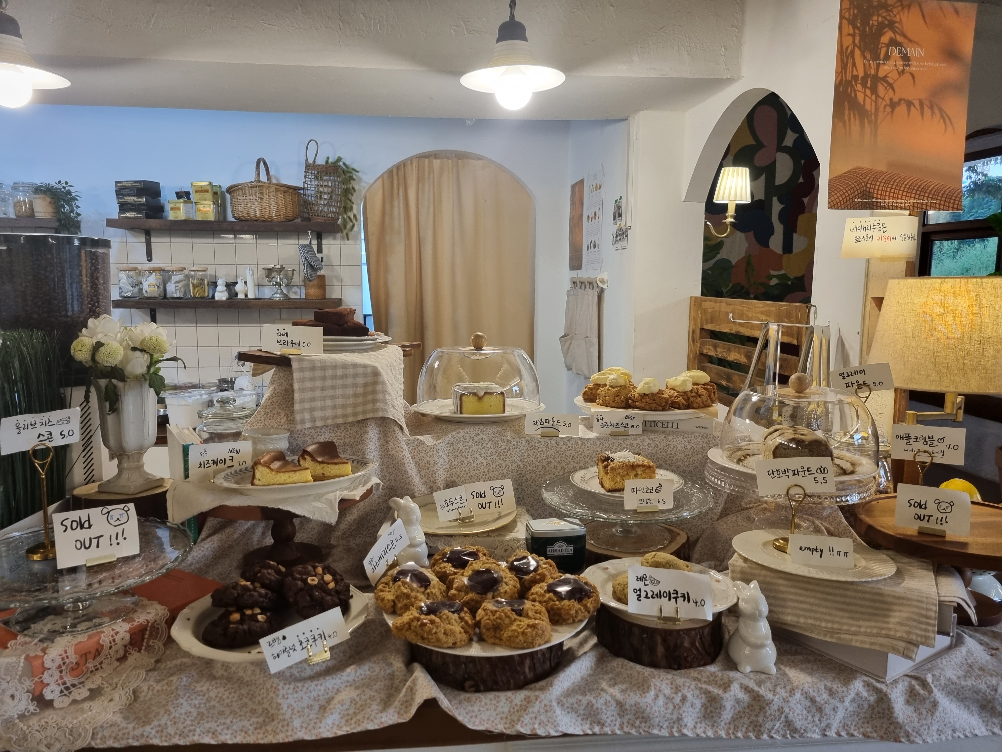 쿠키, 케이크, 파운드 같은 종류를 파는데 얼마나 맛있으면 스콘 같은 경우는 솔드아웃이었습니다.