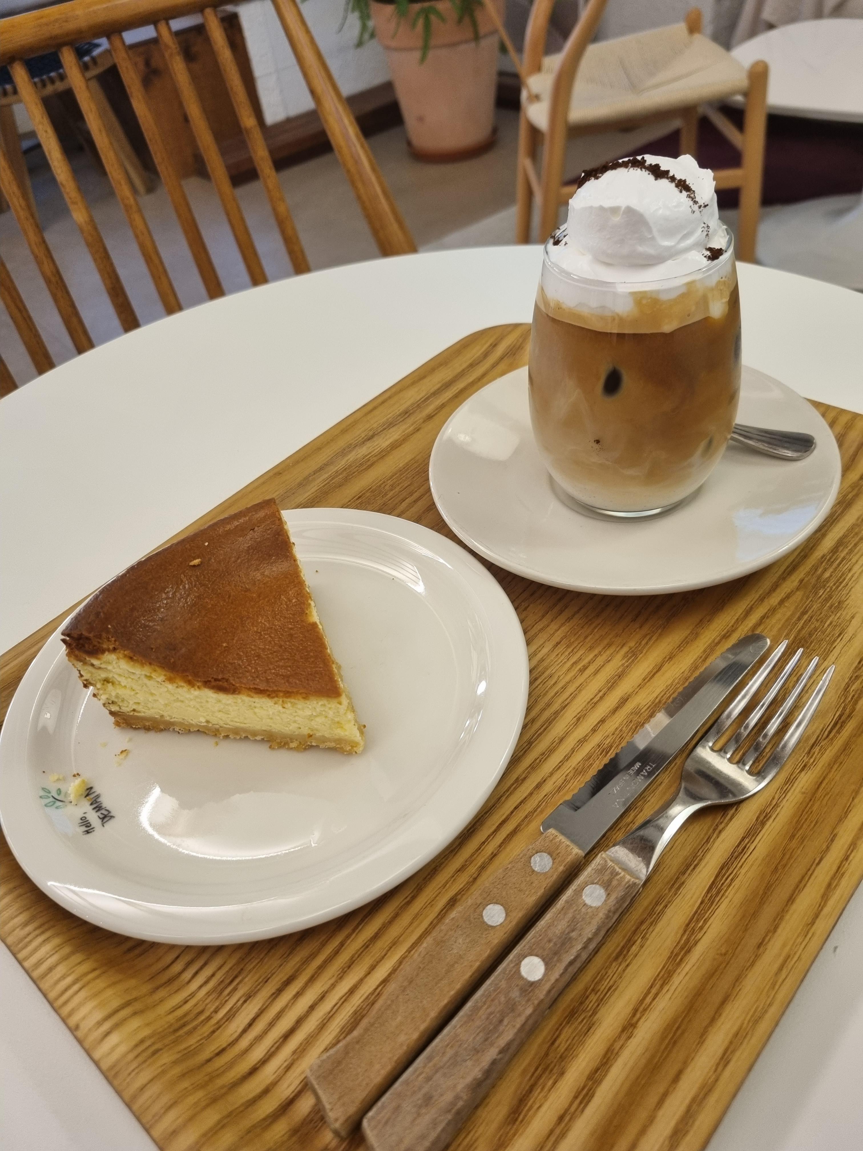 이렇게 왼쪽에는 뉴욕 치즈케이크 오른쪽에는 드메인 크림 라테입니다.