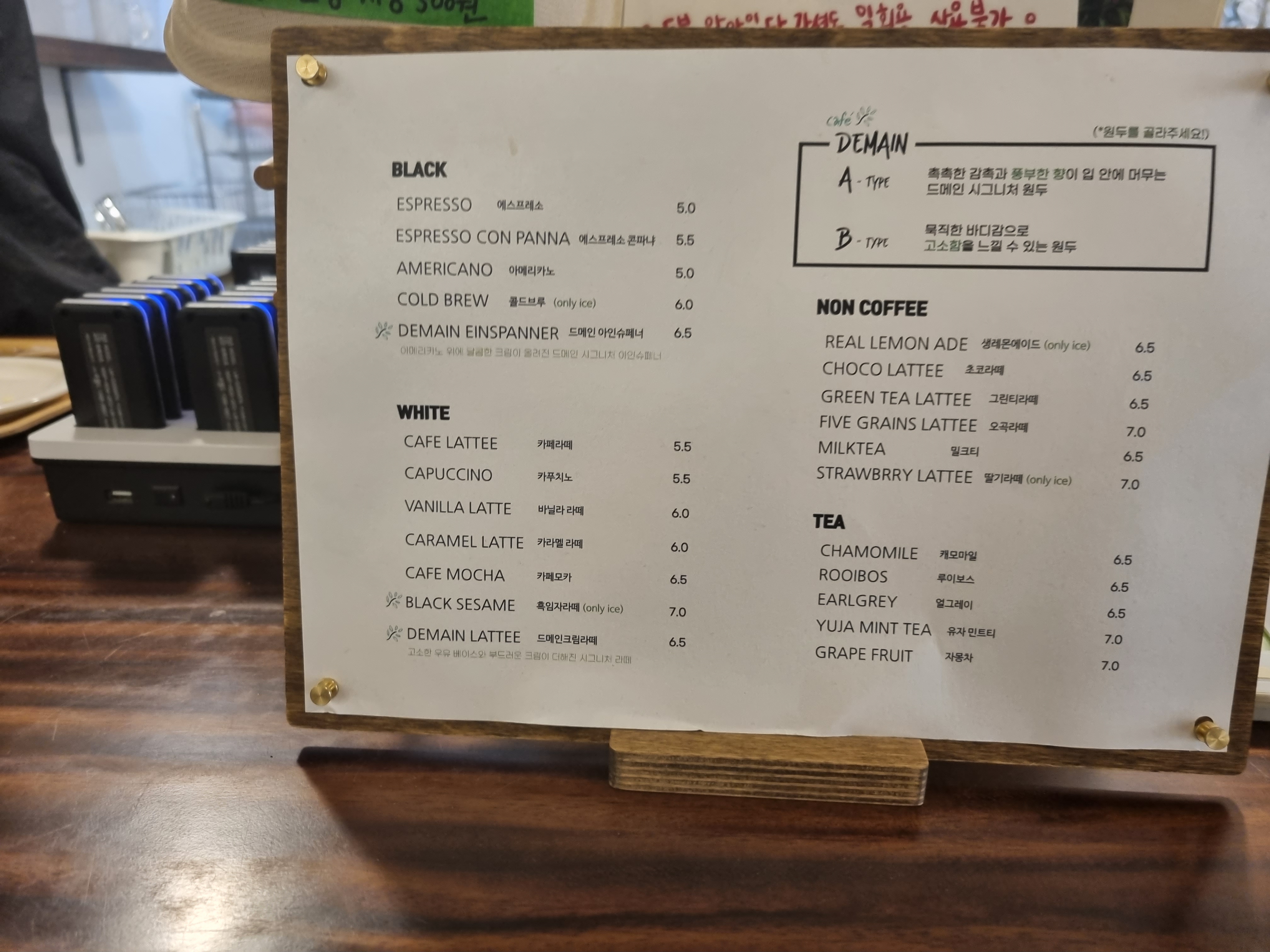 그리고 커피를 시키실 때 A type이나 B type도 시키실 수 있으니 참고 바랍니다