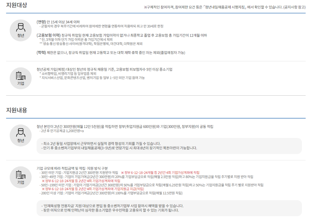 청년내일채움공제 지원대상 및 지원내용